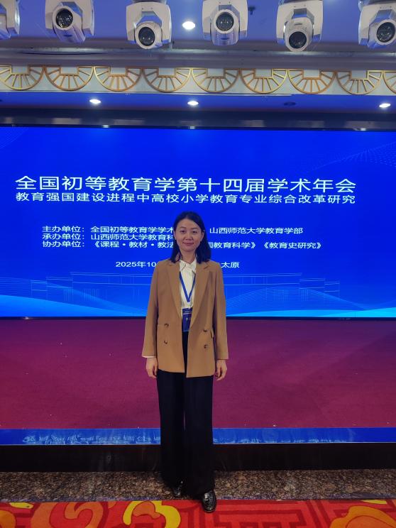 2025年10月24日至26日,全国初等教育学第十四届学术年会在山西太原圆满举办。本次年会由全国初等教育学学术委员会与山西师范大学教育学部联合主办,山西师范大学教育科学学院承办,以“教育强国建设进程中高校小学教育专业综合改革”为核心主题,汇聚了全国70余所高校及科研院所的170余名专家学者,共探初等教育高质量发展新路径。我院高度重视此次学术交流契机,选派青年教师刘盼婷参会,并在第三分论坛围绕“数智时代小学卓越教师学科融合能力职前培养困境与推进路径”主题作专题汇报,充分展现我院在小学教育专业领域的研究实力与育人思考。