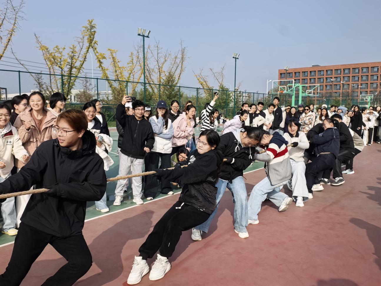 为积极响应国家关于加强青少年体育锻炼的号召,进一步丰富学生的课余文化生活,11月8日至9日,中原科技学院教育学院“凝心聚力,拔得头筹”秋季拔河比赛在一号运动场篮球场正式举行。教育学院党总支书记吴国良、副书记李婉萍、团委书记魏蕾铮以及各年级辅导员老师到场为同学们加油助威。校团委书记张超也亲临赛场观摩指导,与参赛选手及现场师生亲切交流。全院各班级积极组队参赛,现场气氛热烈,秩序井然。