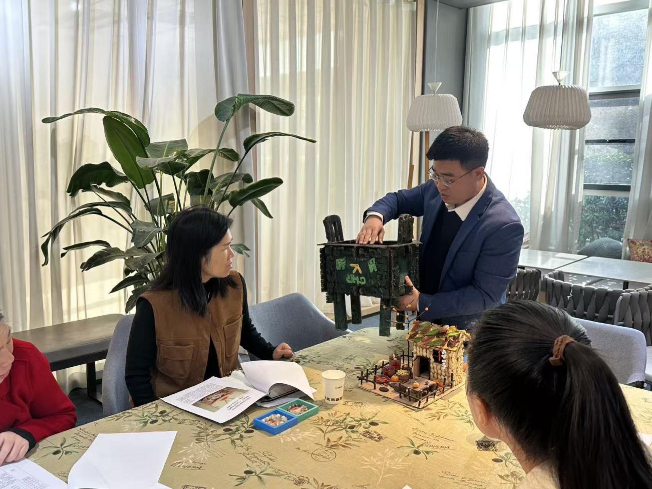 仪式上,金东豪主任介绍了双方在非遗传承、课程开发与实践教学等方面的合作方向,强调将充分发挥各自优势,推动非遗创造性转化与创新性发展。同时,他还展示了学校的优秀非遗作品,如后母戊鼎非遗手作。金东豪表示,这些作品既是学校非遗教学成果的直观呈现,更印证了“特色非遗教学课程+实践落地”模式的可行性,此次校企合作将进一步打通“教学-实践-转化”的完整链路。