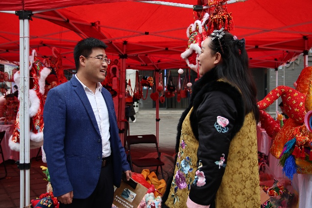 展会开始后,中原非遗传承与推广应用研究中心(以下简称“中心”)主任金东豪带领团队率先与钩编、虎头娃娃、金属浮雕、泥人、蛋壳画、香包等多个非遗项目的传承人亲切交流,记录非遗技艺风采并合影留念。金东豪主任在交流中介绍到中心即将推出的“100个非遗传人故事”计划,旨在通过文字与影像定格匠心、传播非遗魅力,为非遗传承注入人文温度。