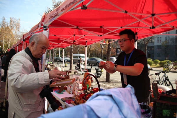活动期间,中心师生热情高涨、风采尽显。中心主任金东豪倾情分享,向参观人员细致讲解参展优秀展品的非遗底蕴与创作巧思;张振、尚浩然等同学在互动环节积极应答、踊跃交流,现场学子对线编、掐丝珐琅、衍纸等非遗技艺表现出浓厚兴趣,不时为精美的非遗作品驻足赞叹,充分彰显了青年一代对中华优秀传统文化的深厚认同与热爱。