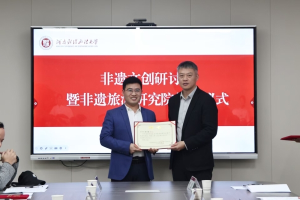 上午10点,河南财经政法大学非遗文创研讨会暨非遗旅游研究院揭牌仪式成功举办。研讨会现场议程紧凑、亮点纷呈。河南财经政法大学相关领导致辞后,揭牌仪式顺利举行,标志着非遗旅游研究院正式成立。河南省文化和旅游厅公共服务专家委员会副主任、国家文化旅游研究基地首席专家时明德围绕“文化赋能旅游焕新”主题发表见解,强调文化是旅游的灵魂,需以非遗为纽带激活文旅产业新动能;河南省非物质文化遗产保护和智慧化中心主任李全民聚焦非遗发展核心,指出“非遗本身兼具文化属性,无需叠加‘文化’二字,传承的核心在于坚守技艺本真”。